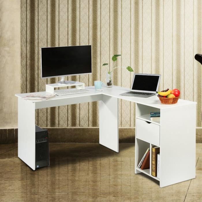 Bureau D Ordinateur En Forme De L Grande Table D Angle En Pc Avec Support D Ecran Blanc Sac B Prix Pas Cher Cdiscount