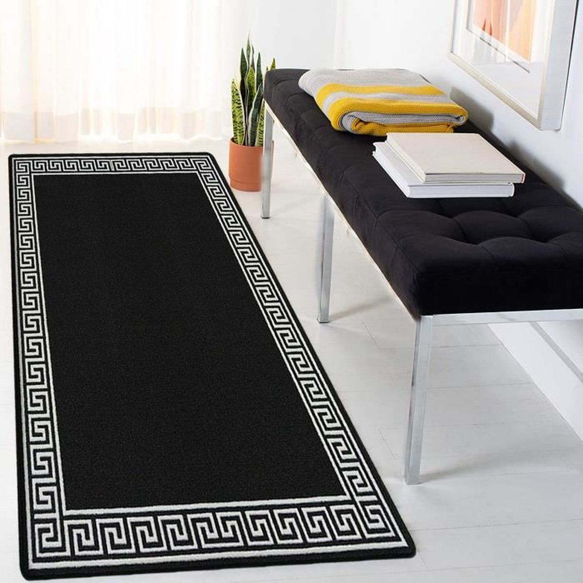 Payidar Tapis De Couloir Long Noir Et Blanc Noir 80 X 250 Cm Amazon Fr Cuisine Maison