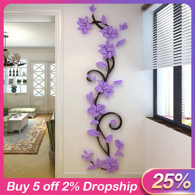Autocollants Muraux En 3d Motif De Fleurs Autocollants Pour Enfants Decoration De Fond De Tv Salon Chambre A Coucher Aliexpress