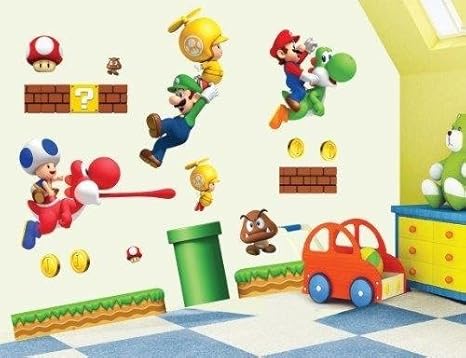 Aolevia Sticker Mural Naturel Super Mario Bros Stickers Pour Enfant Autocollant Mur Stickers Decoration De Salle Taille 50 70 Cm Amazon Fr Cuisine Maison
