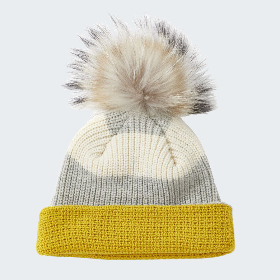 Bonnet Pompon Raye Ecru Gris Jaune Peregrine