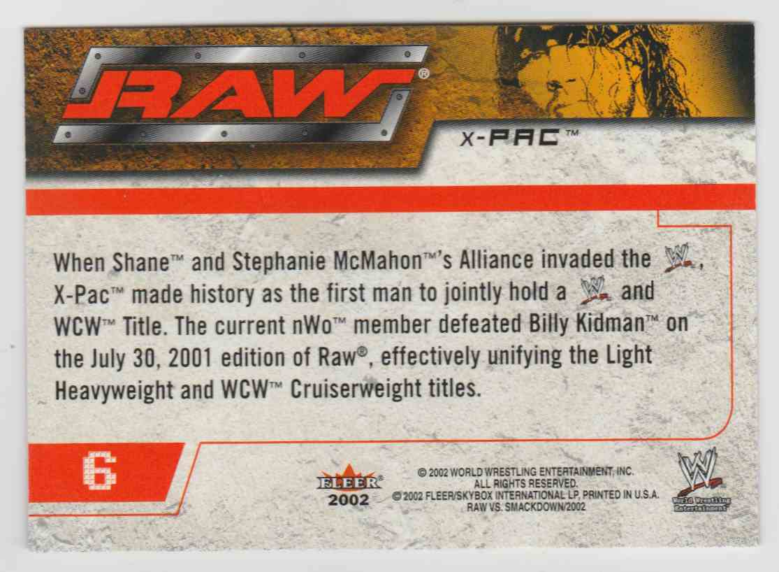 02 Fleer Wwe Raw Vs Smackdown X Pac 6 On Kronozio