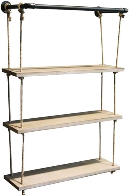 Daluxe Etagere Pour Murs Solide Etagere Murale En Bois Avec Une Corde De Chanvre Et Tuyau Sejour Fer Une Rangement Metallique Racks Dans Support Le Decor De Tenture Pour Bibliotheque Amazon Fr