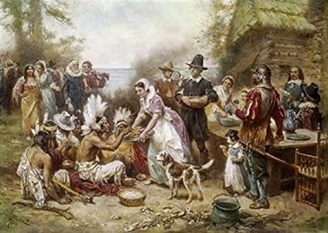 The first Thanksgiving as imagined by Jean Leon Gerome Ferris in the early th century Photo courtesy Wikimedia Commons.