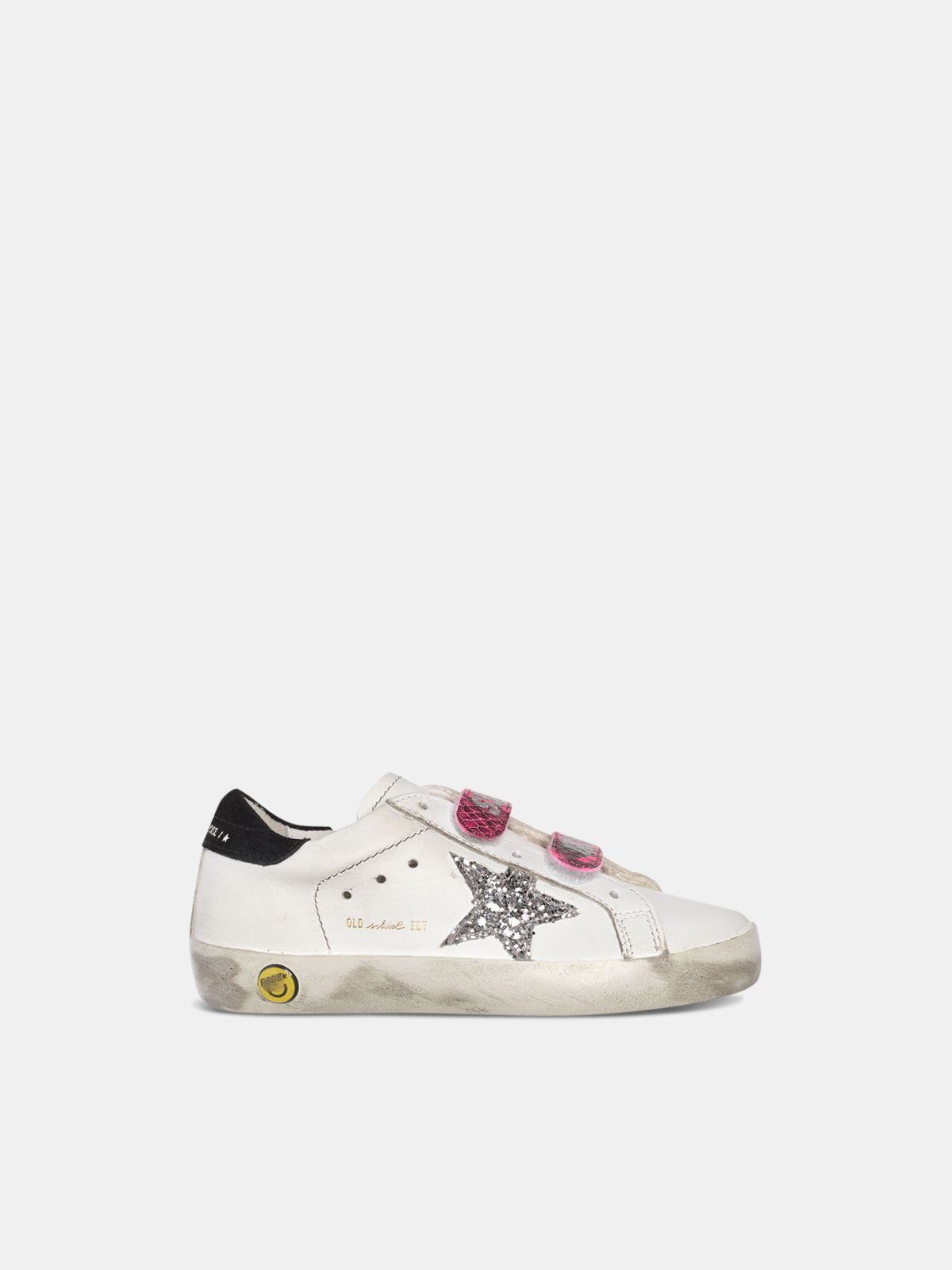 Old School Sneakers With Glittery Star And Fuchsia Snakeskin Print Heel Tab Golden Goose