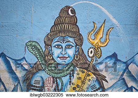 The Dieu Hindou Shiva Peint Sur Mur De A Maison Sur Les Banques De Les Riviere Gange Varanasi Uttar Pradesh Inde Asia Banques De Photographies Iblwgb Fotosearch