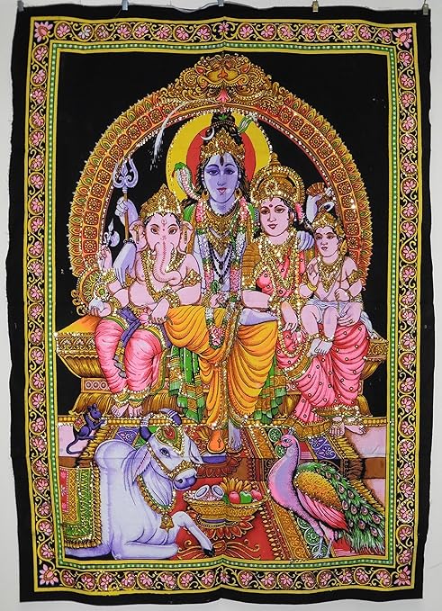 Pilgrims Fair Trade Paillettes Coton Tableau Dieu Hindou Shiva Famille Decoration Murale A Suspendre Environ 80 X 110 Cm Amazon Fr Cuisine Maison