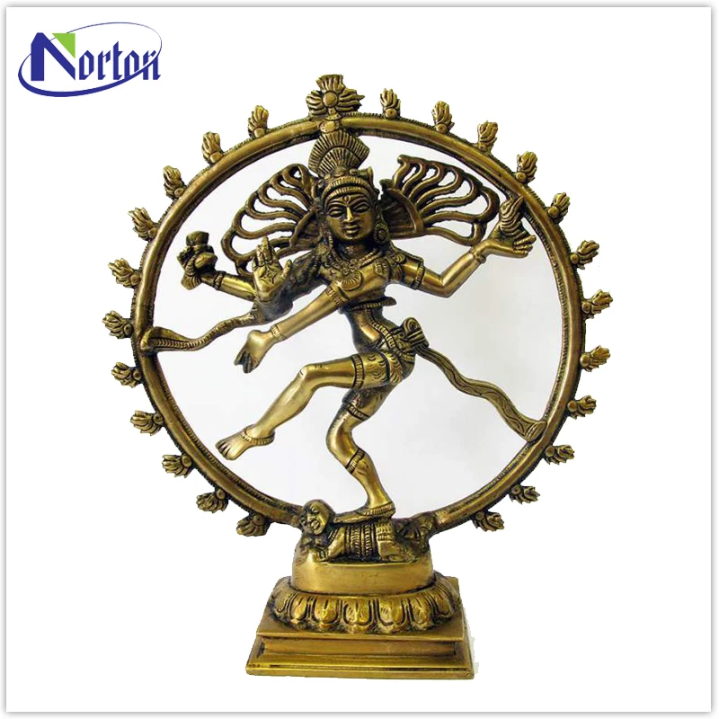 Danse cadeaux religieux de Shiva nataraja Dieu hindou laiton sculpture 1461 cm Description du produit Laiton statue métallique de danse shiva Natraj Taille 575 x 45 x 2 pouces Poids 317 grammes Moulage en sable Made in Muradabad en Inde. Shiva, the third god of the Hindu triad, has three eyes, the third one (between the eyebrows) being usually closed, except at the time of destruction of thingsHe wears long hair, supports the holy Ganga river on his head and the crescent moon on his matted hair He has two to four arms, holds a trident in his hand, is naked except for a tigerskin, besmears himself with ash and is decorated. He is the cosmic dancer, clothed in tiger skin and covered in ash, with a serpent around his neck and his drums are believed to keep the rhythm of the univer.