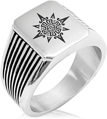 Tioneer Acier Inoxydable Rune Dieu Soleil Maya Bague Polie De Style Motard Avec Rayures A L Aiguille Amazon Fr Bijoux