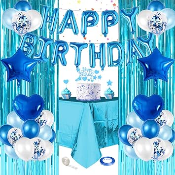 Ayuqi Decorations De Fete D Anniversaire Garcon Metallique De Frange Gateau Banniere Ballons Set Decorations Pour Fete D Anniversaire Amazon Fr Jeux Et Jouets