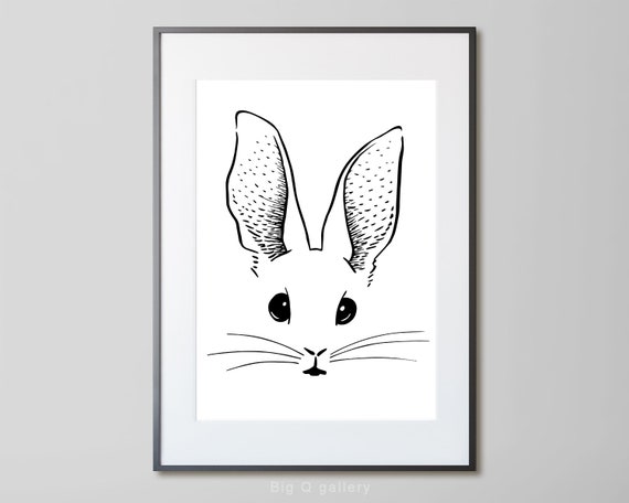 Cute Bunny Printable Wall Art Black And White Graphic Drawn Etsy