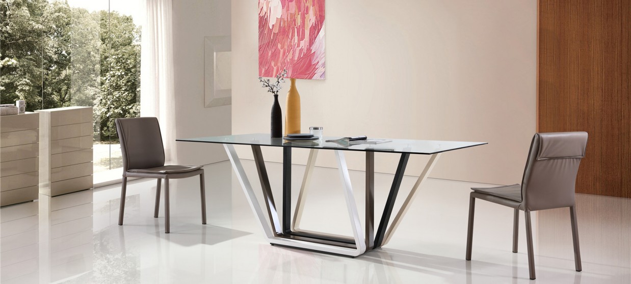 Table A Manger Design En Verre Trempe Et Acier Imelda