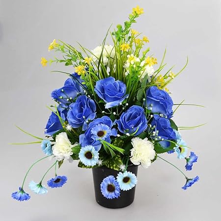 Fleur Artificielle Pour Tombe Memorial Pot De Fleurs Cimetiere Avec œillets Roses Bleu Amazon Fr Cuisine Maison