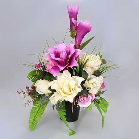 Fleur Artificielle Pour Tombe Memorial Pot De Fleurs Cimetiere Avec Ivoire Violet Lily Rose Amazon Fr Cuisine Maison