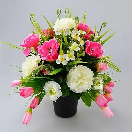 Pot De Fleurs Artificielles Pour Cimetiere Anemones Roses Et œillets Blancs Amazon Fr Cuisine Maison