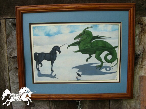 Black Unicorn Vs Wyvern Dragon Painting 18 5 By 22 Inch Etsy
