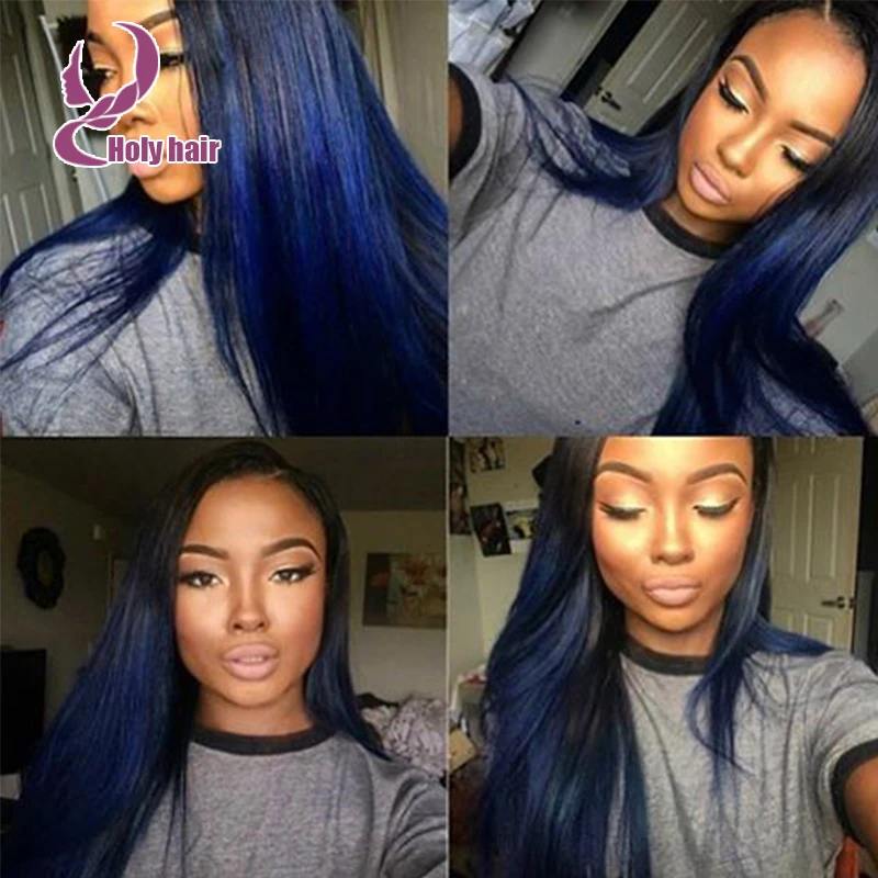 130 Density Lace Front Wig Color 1b Blue Ombre Straight Hair Virgin Human Lace Wig Virgin Human Hair Extensions Virgin Hair Fantasy Dyhair777 Com