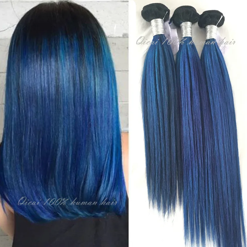 Ombre Color Hair Weave 1b Blue Straight Human Hair 3 Bundles Supernova Hair