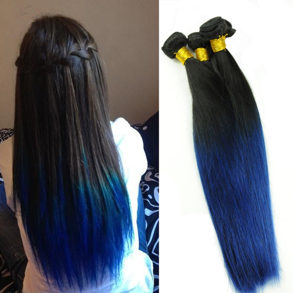 Shop Brazilian Ombre Hair Extensions 8a Grade Unprocessed 2 Tone 1b Blue Ombre Brazilian Virgin Hair Straight 3 Bundles Hair Weft Online From Best Ombre Hair On Jd Com Global Site Joybuy Com
