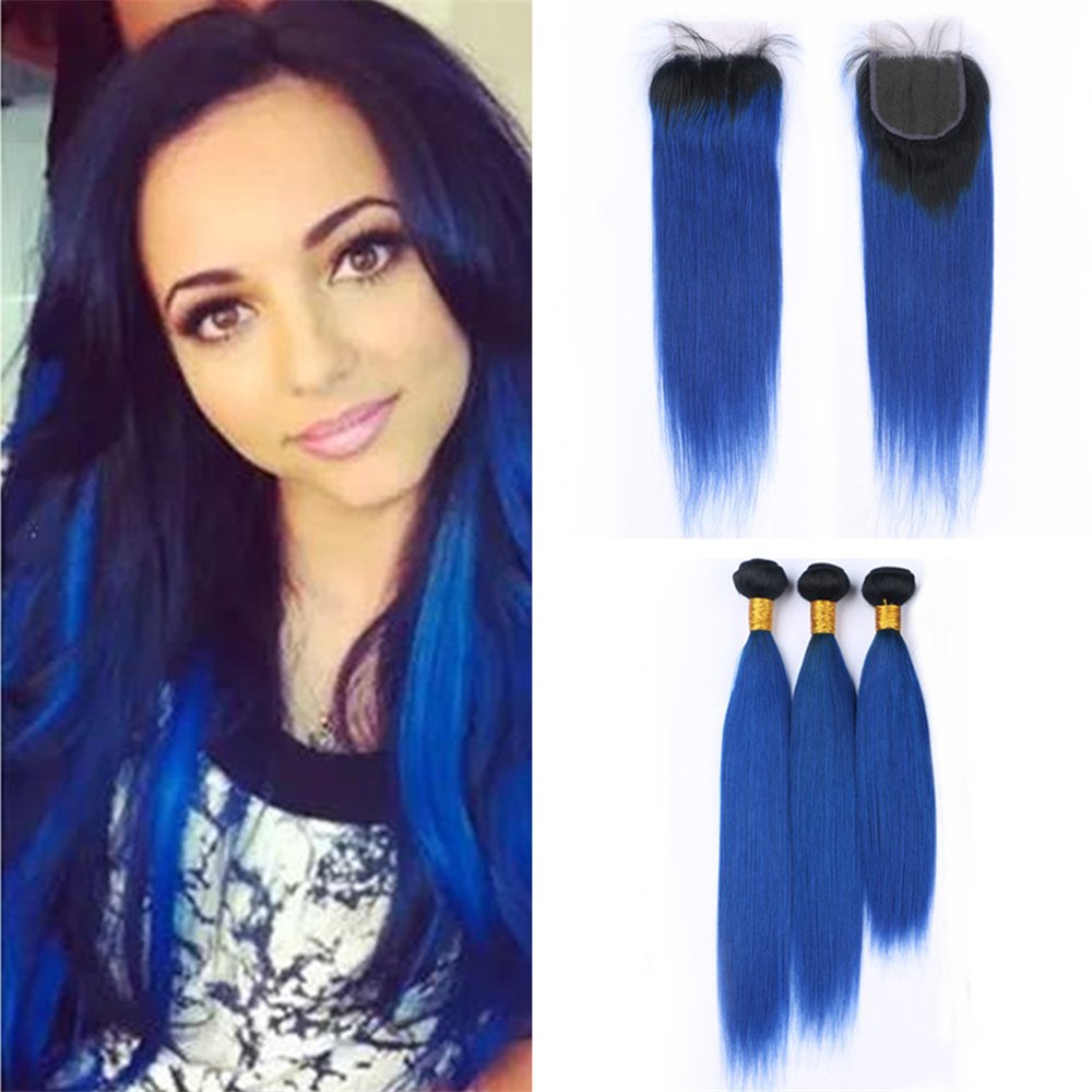 China Ombre 1b Blue Straight Bundles With Closure 2 Tone Ombre Hair 3 Bundles With Closure Brazilian Remy Human Hair Straight Weft Ombre Human Hair Bundles 1b Blue Bl China Bundles With