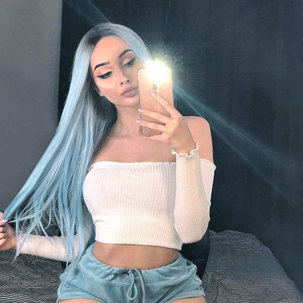 18 New Mint Blue Ombre Synthetic Lace Front Wig Black Mint Blue Long Straight Ombre Hair Wig Lace Wig Xmky Xt122 79 99