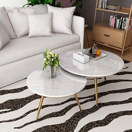 Xwzjy Ensemble De 2 Tables Basses D Angle Tables Gigognes Rondes Tables De Loisirs Petites Pour Le Salon Dessus De Marbre Blanc Et Jambes En Metal Meubles Creatifs Amazon Fr Cuisine Maison