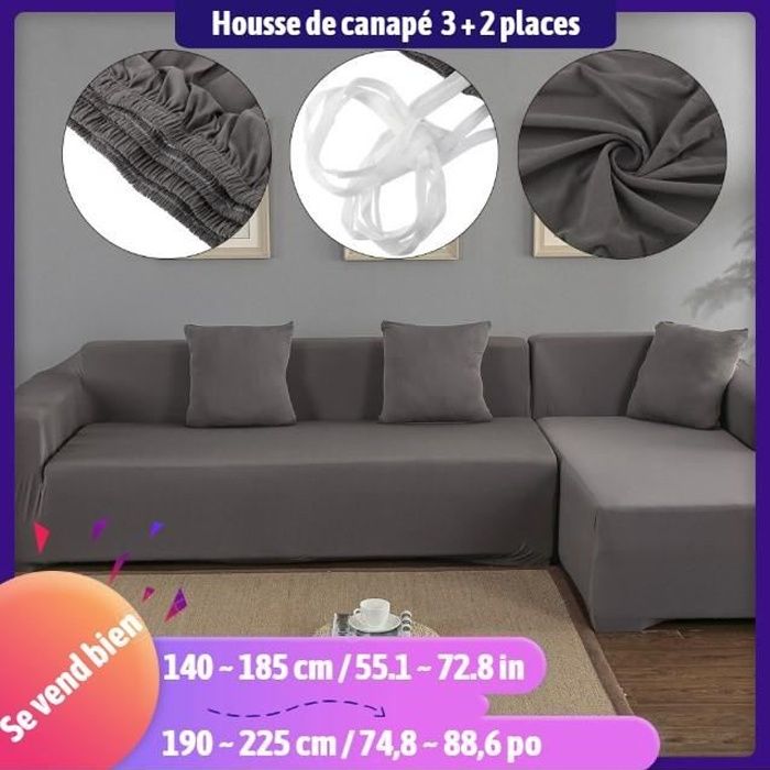 Housse De Canape D Angle En Polyester 3 2 Places En Forme De L Housse De Protection Pour Meubles De Maison Gris Achat Vente Housse De Canape Soldes Sur