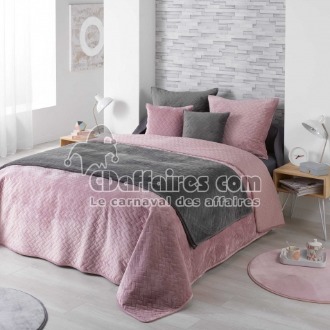 Couvre Lit 2 Pers Matelasse 2 X 240 Cm Velours Uni Bellanda Rose Cdaffaires