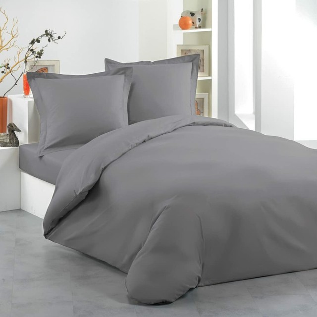 Couvre Lit Uni Uni Uni 3 Pieces Avec 2 Taies D Oreiller De Style Oxford Gris Super King Amazon Fr Cuisine Maison
