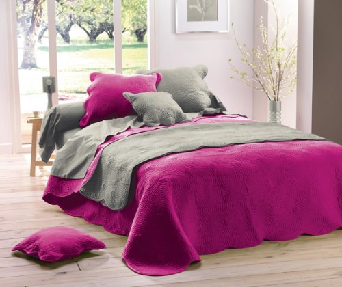 Boutis Jete Lit Couvre Lit 2 X 240 Cm Uni Fuchsia Achat Prix Fnac