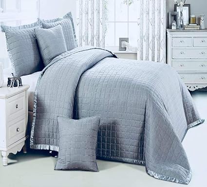 Gris Alpes Blanc Couvre Lit Boutis Uni Grande Dimension 260x260 Boutis Literie Et Linge De Maison