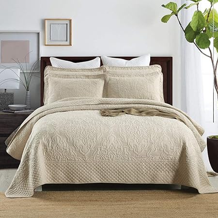 Wdxn Dessus De Lit 2 Personnes Couvre Lit Matelasse Couvre Lit Uni Doux Et Confortable Uni Couvre Lit Reversible Avec 2 Taies Doreiller Beige 230 250cm Ameublement Et Decoration Cuisine Maison