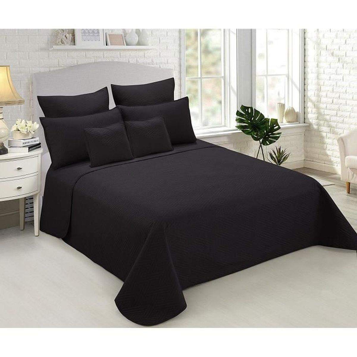 Couvre Lit Boutis 7 Pieces Uni Piquage Metro Noir Achat Vente Jetee De Lit Boutis Soldes Sur Cdiscount Des Le Janvier Cdiscount