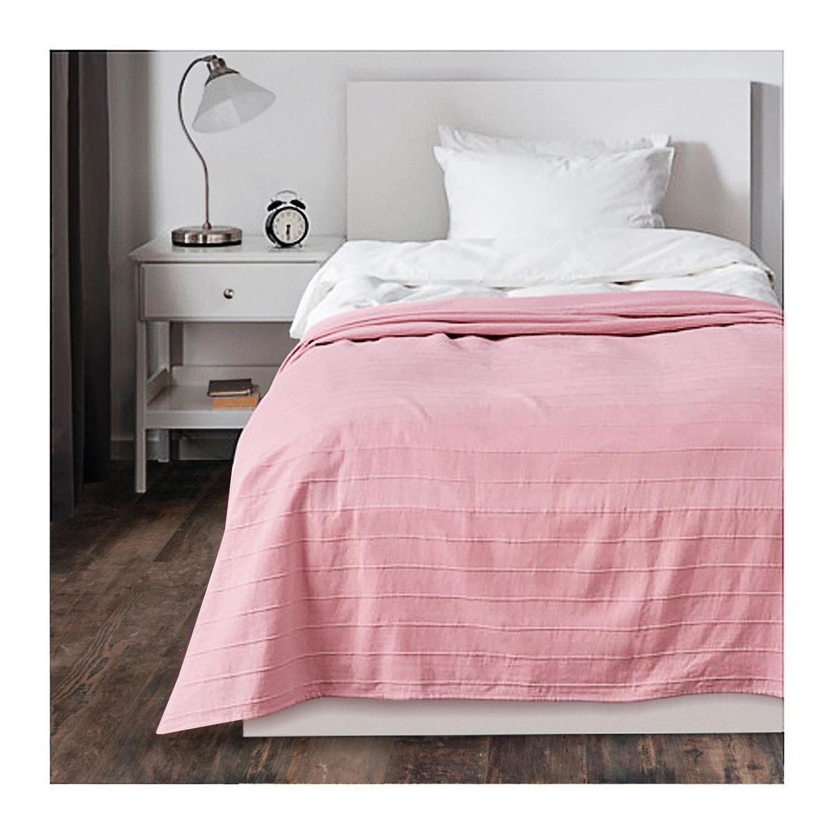 Jete Couvre Lit Uni L 250 X L 170 Cm Differents Modeles Rose K Koon Linge De Lit La Foir Fouille