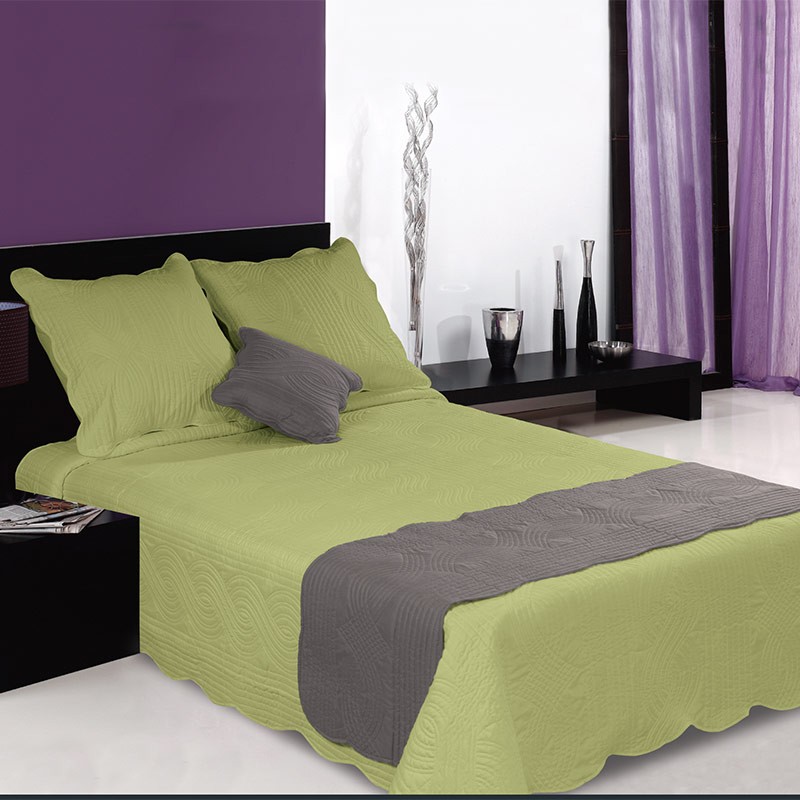 Couvre Lit Uni 2 Taies 2 Personnes Vert Le Linge De Jules