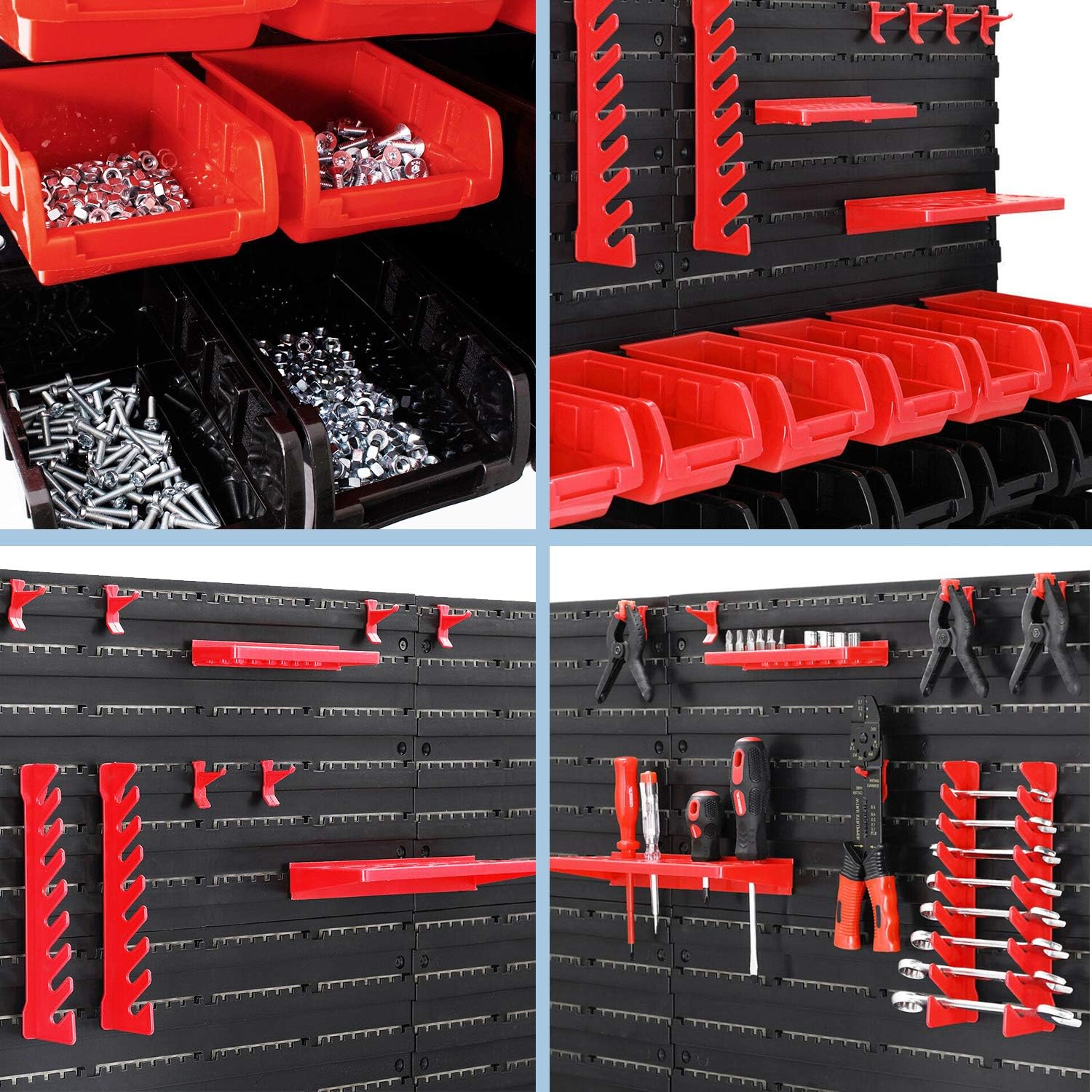 10 5x7 5x16 5cm Deuba Etagere Murale Avec Bacs A Bec Modulable Extensible Etagere Datelier Armoire A Outils 45 Pieces 28 Boites Noir Et Rouge Atelier Garage Bricolage Etageres