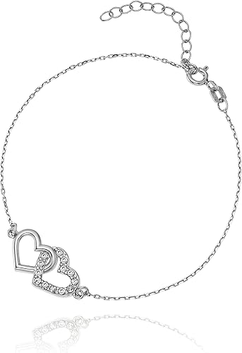 Lillymarie Femme Bracelet Argent Deux Coeurs Enlaces Swarovski Elements Longueur Reglable Sacs En Satin Cadeau De Fete Des Meres Amazon Fr Bijoux