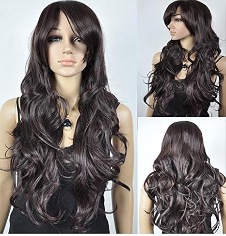Black Brown Extra Long Wavy Curly Cap Hair Wig Noir Marron Long Ondule Bouchon Boucle Perruque Cheveux Supplementaire Amazon Ca Beauty