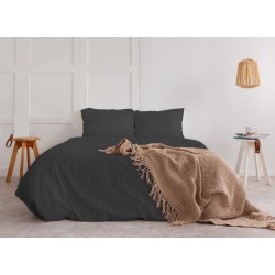 Housse De Couette Unie En Lin Lave Varadero Gris Fonce