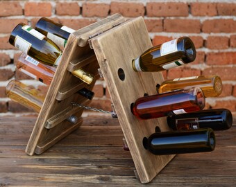 Etagere De Vin Debout Support De Vin En Bois Support De Vin Etsy Wooden Wine Holder Wine Shelves Wine Holder