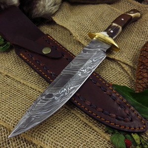 Couteau Damas Marbles Bowie Lame 256 Couches Manche Os Etui Cuir Mr457 Ebay