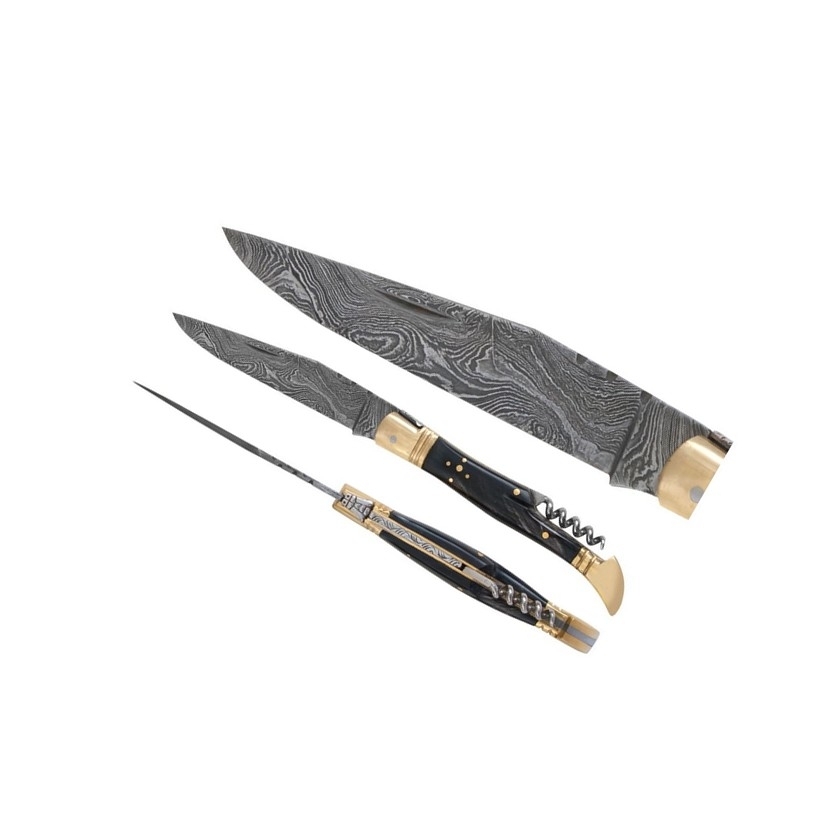Herbertz Couteau Laguiole Lame Damas Avec Tir Bouchon