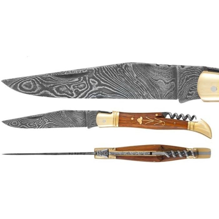 Couteau De Poche Laguiole Bougna Lame Damas 10 5 Cm En Palissandre Prix Pas Cher Cdiscount