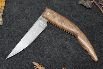 Couteau Pliant Fait Main Le Sperone En Genevrier Et Lame Damas