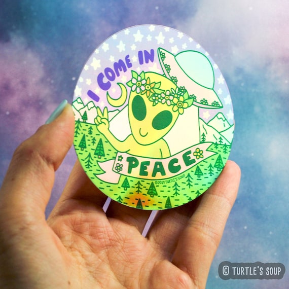 Alien Sticker Holographic I Come In Peace Area 51 Ufo Etsy