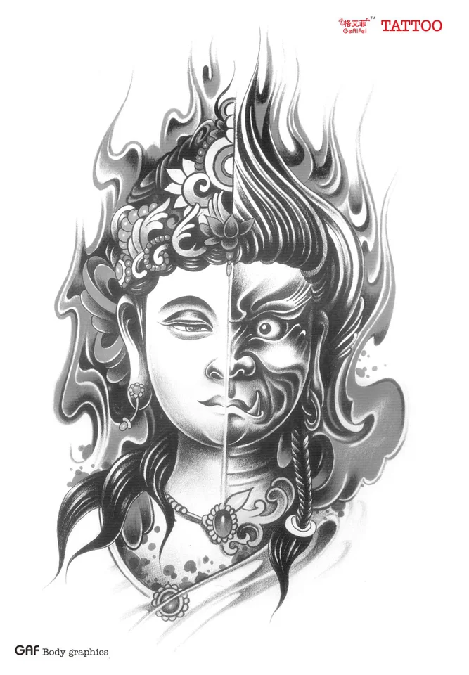 Grand Tatouage Temporaire Autocollants Etanche Hommes Double Face Bouddha Visage Conceptions Bras Faux Tatouage De Pulverisation Haute Qualite Sexy Produits Aliexpress