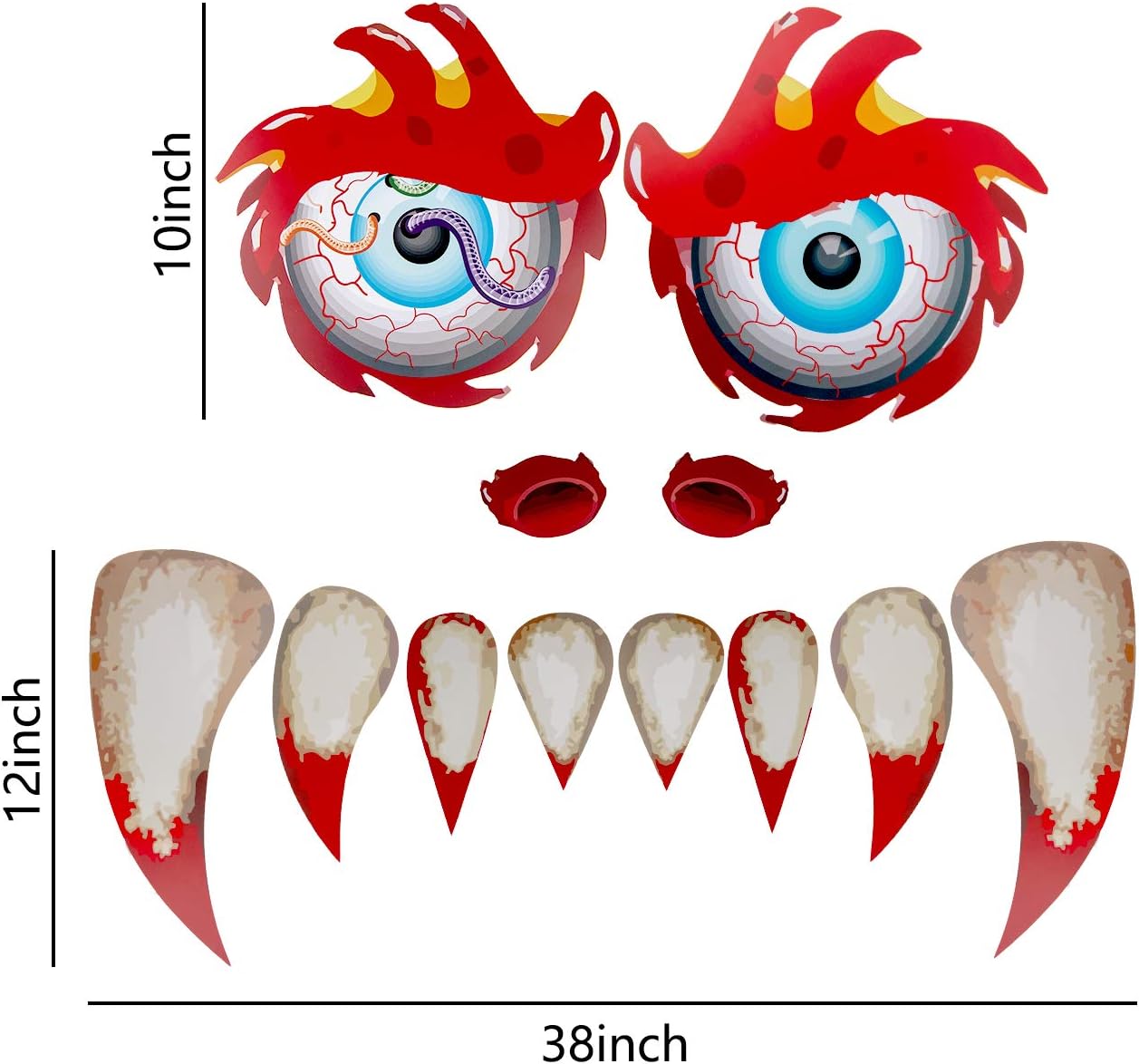 Savita Halloween Monstre Visage Autocollants Double Face Etanche Pvc Autocollants Decal Arcade Garage Porte Decoration Avec Crocs Yeux Narines Ameublement Et Decoration Decorations De Saison