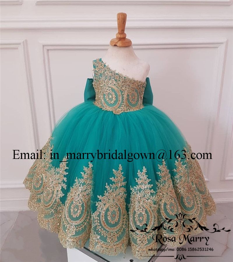 Acheter Belle Dentelle Dor Africaine Filles Pageant Robes Robe De Bal Une Epaule Pas Cher Noeud Noeud Arc Long Tulle Filles Anniversaire Premiere Communion Pour Les Enfants De 107 5 Du