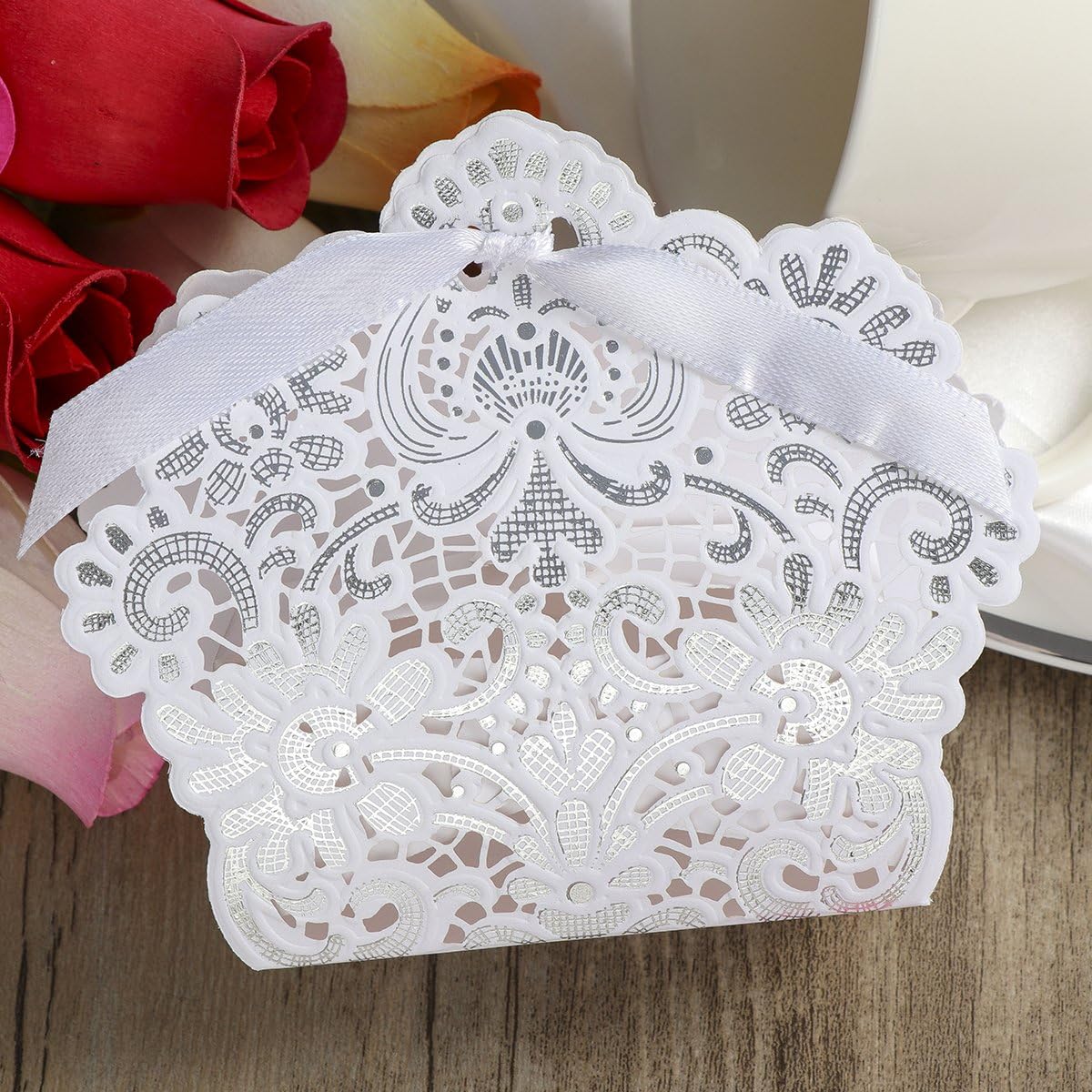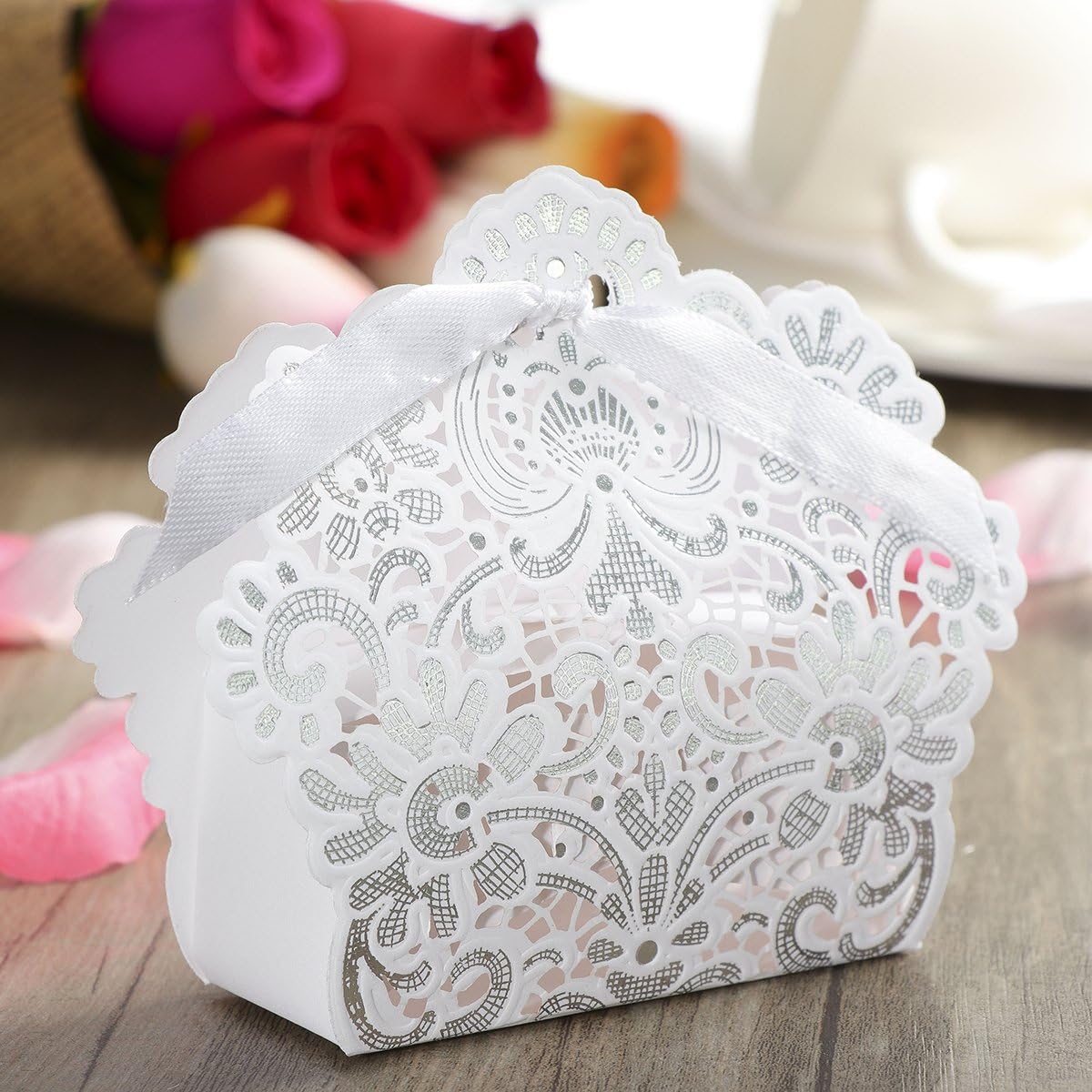 Loisirs Creatifs Vorcool Lot De 50 Boites A Dragees Pour Mariage Avec Rubans Blanc Cuisine Maison Hovdenhoyfjellsenter No