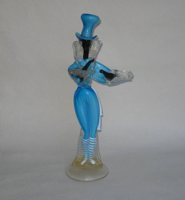 Murano Italie Ancien Personnage En Verre Souffle Teinte Paillete D Or Ebay